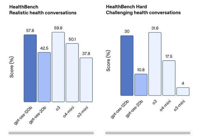 两款模型在工具使用、few-shot 函数调用、CoT 推理以及 HealthBench 测试中表现非常出色,甚至超越了 o1 和 GPT-4o 等专有模型。