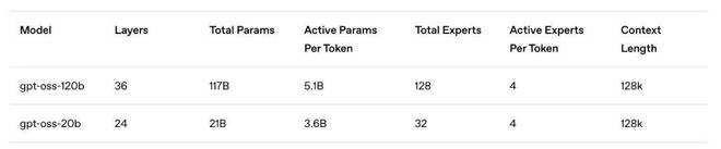 两款模型均采用 Transformer 架构,并利用专家混合(MoE)来减少处理输入所需的活跃参数数量。其中,gpt-oss-120b 每个 token 激活 5.1B 参数,而 gpt-oss-20b 则激活 3.6B 参数。两款模型的总参数分别为 117B 和 21B