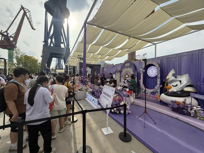 RED LAND不同于以往的游戏二次元展会——8万平方米展区,有接近三分之二位于室外,为经典游戏、动漫的宏大场景提供更大的可发挥空间。船台PARK打造的“翻身时空港”区域内,全球最大的蛋仔派对装置高达14米,一旁《王者荣耀》等高热IP与几十米高的工业塔吊形成奇妙呼应。
