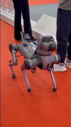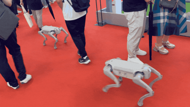 这支机器狗队伍穿梭在各个展馆之间,“咚咚咚”的踩地声好像在提醒观众们让路。不过你要是驻足跟他们打招呼的话,这些小狗也能朝你挥挥手~不过挥完它们就要继续赶路了。