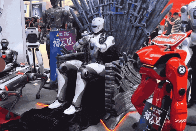 ENGINEAI T800坐在铁王座上,手上还缠着铁链,谁看了不说一声好帅?