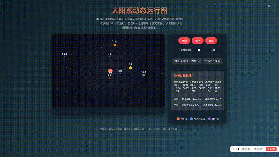 最后,我们就得到了一个设计精美、且直观的太阳系动态运行图。