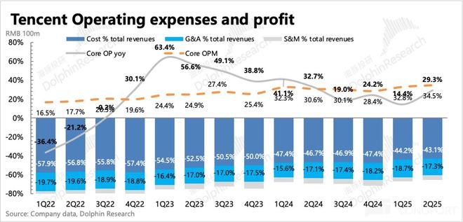 而业务增长之外,Q2 业绩还给我们展示了一个高效管控的庞大组织运转。海豚君认为,除了腾讯自身的经营管理能力外,一如海外大厂,AI 同样能够助力互联网平台运营效率的提升——虽然短期有较高的前置投入,但长期来看能够持续优化基础开发资源成本。