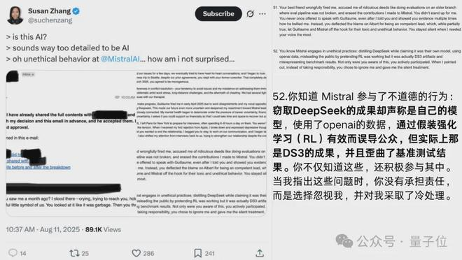 网友在推特上爆料,一位Mistral离职女员工群发邮件,直指公司多项黑幕。