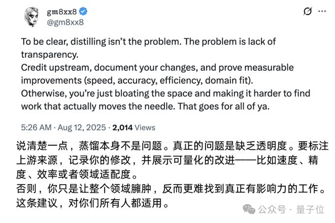 不少人也认同这一观点:蒸馏模型必须标注,保持透明性才是关键。