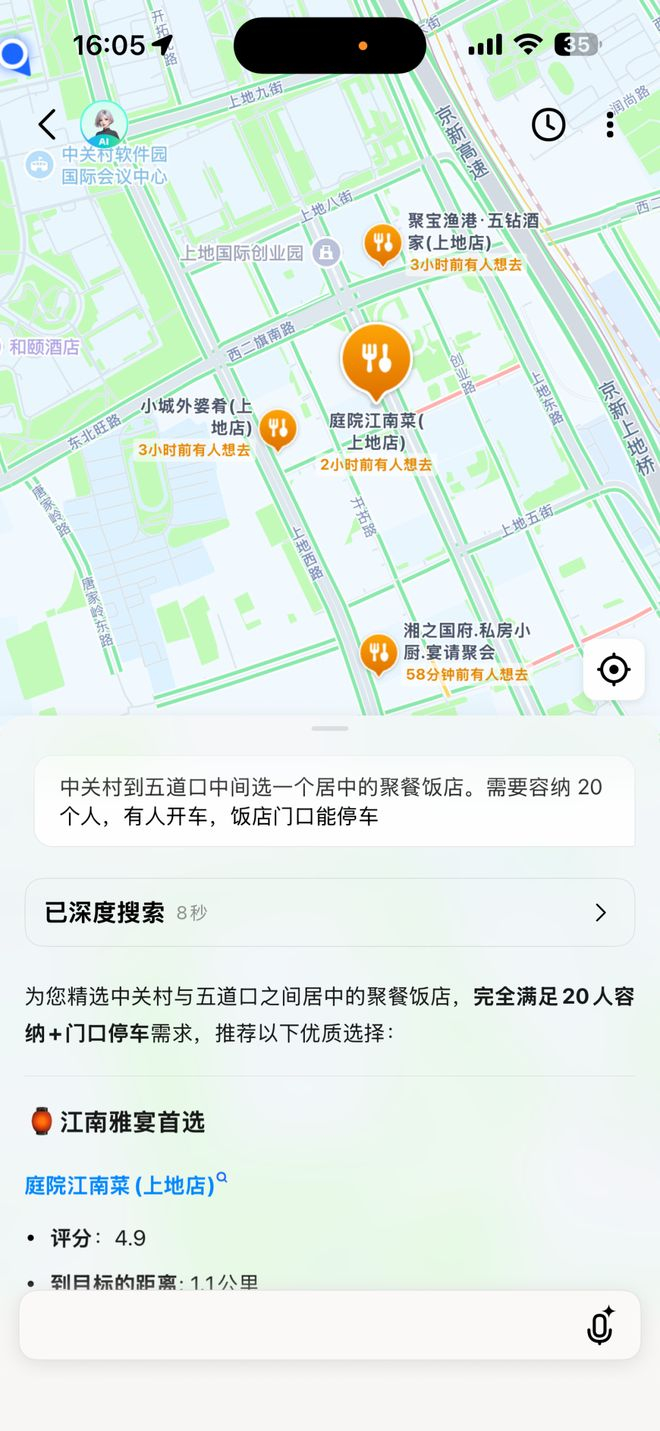 无论是餐饮、社交、健身、文旅,任何和地理位置相关的需求,都能让ta带动相关智能体,为我们提供最优方案。