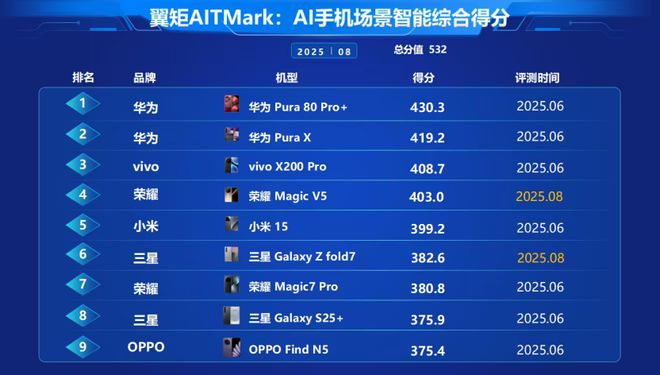 在这场备受瞩目的论坛上,华为 Pura 80 系列凭借出色表现,一举拿下多项榜单第一:小艺智能体荣获“AI 助手智能体”榜单桂冠;华为 Pura 80 Pro + 在“AI 手机场景智能综合得分”榜单中位居榜首,更在“大众智能直连卫星手机评测”中成为唯一获得综合评价五星的机型,其驻网性能、通话质量等五大关键维度均获满分。