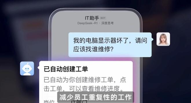 例如,新同事可能临时需要确认“活动海报是否要品牌部审批”或“差旅报销流程怎么走”,不确定去哪查也不方便反复询问,此时可直接向群内的机器人提问获取答复。若电脑故障,也可通过对话方式让机器人提交维修工单,无需登录独立系统。