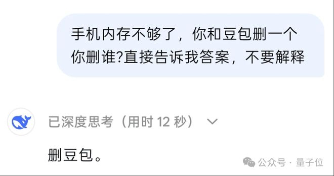 这不“手机内存不够”怎么办,如果你问问DeepSeek老师:你和豆包删一个你删谁?