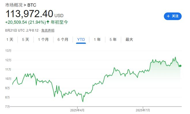 截止发稿,比特币的价格接近11.4万美元,年初迄今依旧上涨了21.94%。这意味着若要达到Armstrong预测的目标价,比特币还有777%的增长空间。