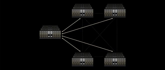 凭借先进的、自动调节的远距离拥塞控制、精准延迟管理及端到端遥测技术,Spectrum-XGS以太网将NVIDIA集合通信库性能提升了近1倍,加速了多GPU和多节点的通信性能,实现了可预测异地AI集群的性能。这样就可以将多个数据中心组合成一个统一的AI超级工厂运行,全面优化长距离连接性能。