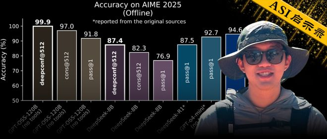 可以说,这是首次利用开源模型在AIME 2025上实现99.9%的准确率,并且不使用任何工具!