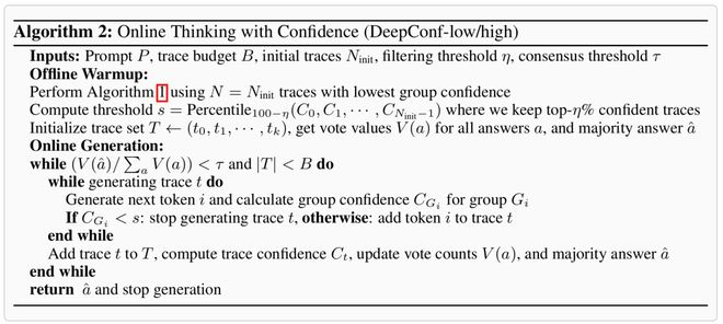 DeepConf需要一个离线预热阶段,以便为在线决策过程建立停止阈值s。