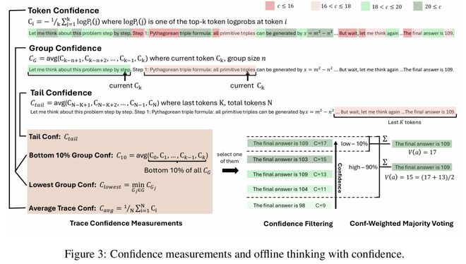 图3阐释了各种置信度度量方法以及基于置信度的离线思考的工作原理。