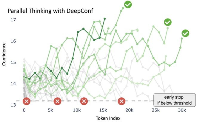DeepConf实时监控「局部置信度」,在错误的推理路径消耗数千个token之前及时终止。