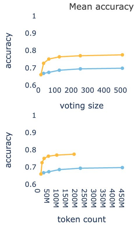 表明DeepConf在相同投票规模下能达到更高的准确率。
