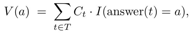 对于每个候选答案a,它的总投票权会被重定义为: