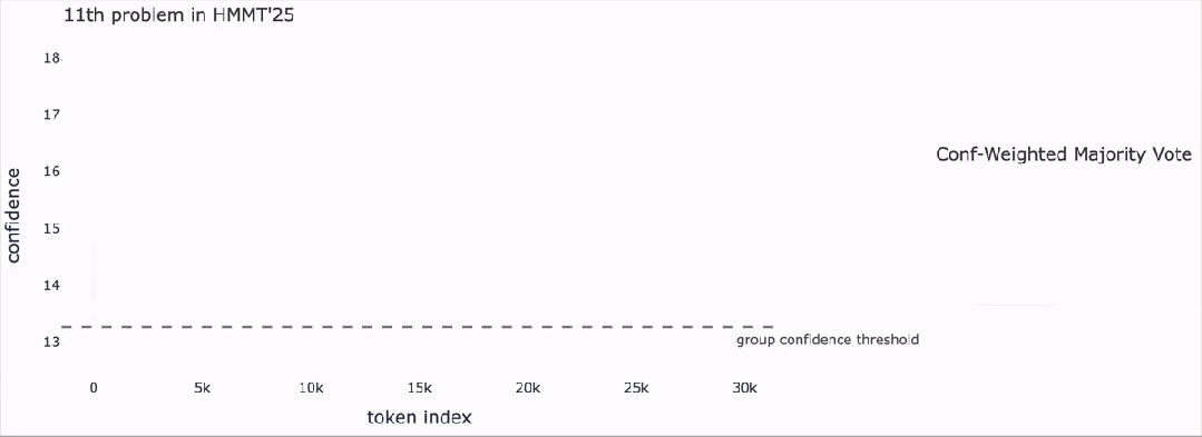 以DeepConf在HMMT 25(哈佛–麻省理工数学竞赛)的第11道题目上的推理过程为例。