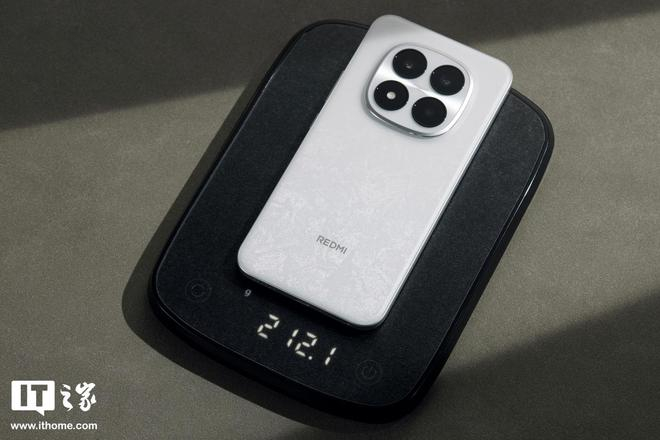 机身厚度方面,IT之家实测 REDMI Note 15 Pro + 机身厚度为 8.3mm(官方数据为 8.08mm),重量实测为 212.1g(官方数据位 210.8g)。此外,根据官方数据,雪松白版本 REDMI Note 15 Pro + 的机身长和宽分别为 163.34×78.31mm。