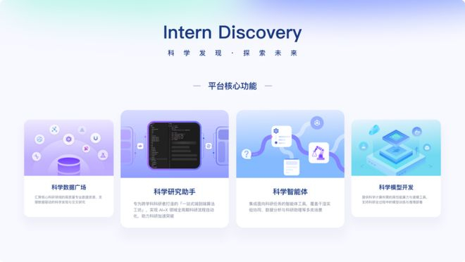 Intern-Discovery以Intern-S1为核心,整合了专业智能体、海量科研数据及实验设备,可以给全球研究者提供从假设到验证的一站式科研支撑,目前平台已开放全球试用申请。