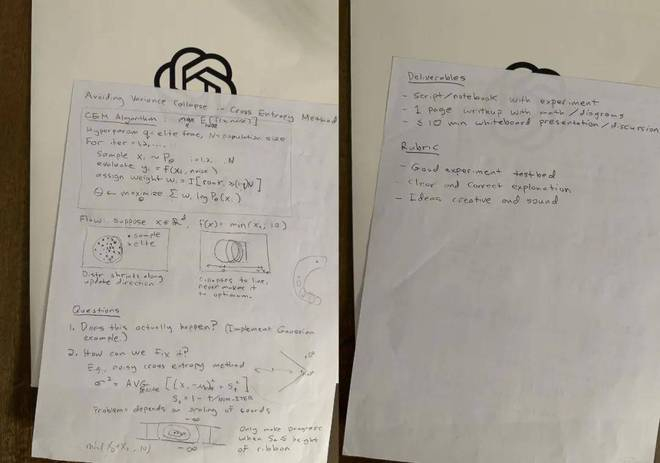 当时的议题是讨论一个强化学习问题(交叉熵方法中的方差崩溃)。谢赛宁表示,他当时对强化学习几乎一无所知。但这正是重点所在:OpenAI 会给你一份完整的问题描述,是由 OpenAI 联合创始人 John Schulman 亲自手写布置的,他们会希望你进行学习、研究、解决、写在笔记本上,然后进行演示。