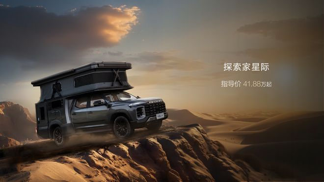 探索家星际主打“可城可野”,降顶后车高低于 2.2 米,升顶后生活舱净高 2 米,容纳两张固定双人床,支持 40 寸幕布投影与 270° 前观景窗,夜晚可躺卧观星。此外,探索家星际采用额头床 + 卡座拼床双床布局,还配备了独立卫生间,且厨房设施一应俱全。