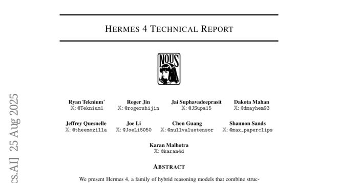 这项由NousResearch团队的Ryan Teknium领导的研究于2025年8月发表,详细介绍了他们最新开发的Hermes 4混合推理模型系列。感兴趣的读者可以通过arXiv:2508.18255v1访问完整论文,模型权重已在https://huggingface.co/NousResearch公开发布。