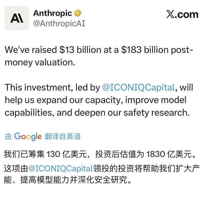 万亿AI独角兽诞生!Anthropic完成130亿美元融资
