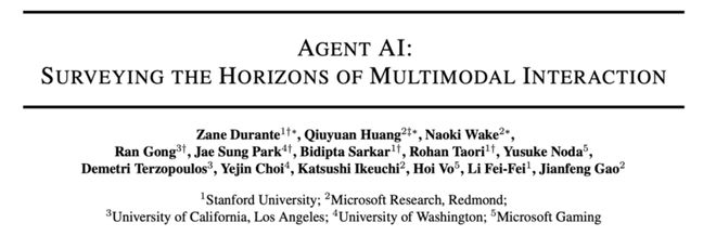 这篇长达80页的综述名为《Agent AI: Surveying the Horizons of Multimodal Interaction》,由李飞飞等14位来自斯坦福大学和微软的专家联合撰写。