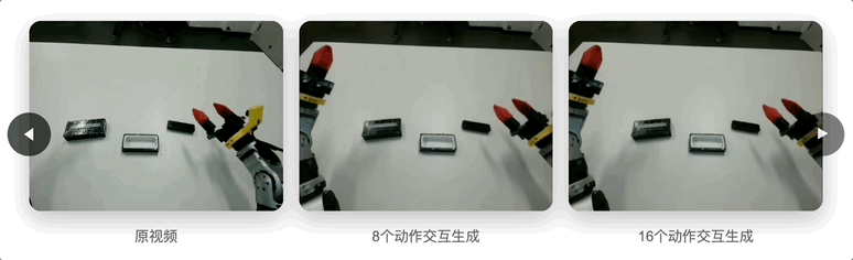 只要给它“当前场景的图像”,再加上一定数量的“机器人未来要做的动作指令”,它就能实现可控的交互生成,生成的内容能精准匹配预期。