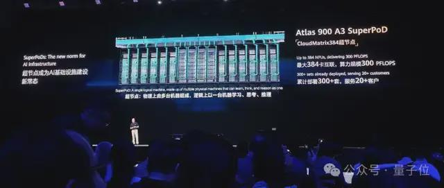 目前华为现有Atlas 900 A3超节点,支持384颗昇腾910C芯片。最大算力达300PFlops,至今仍是全球算力最强的AI超节点。自上市以来,已交付超300套,服务20多家客户。