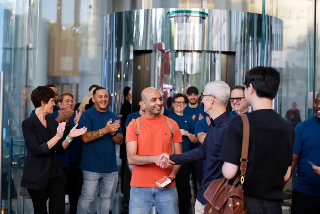 苹果 CEO 蒂姆・库克与零售高级副总裁德尔德丽・奥布赖恩亲临现场,与粉丝合影并签名,现场歌舞不断,气氛如同节日。CNBC 记者形容,今年的热度是去年的十倍,IT之家附上视频如下: