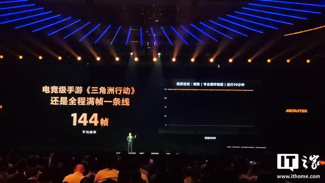 另外,联发科天玑 9500 处理器还实现了《和平精英》《暗区突围》《三角洲行动》等游戏 144 帧满帧运行,1% 最低帧轻松过百帧。同时天玑星速引擎还带来了倍帧技术 3.0,可实现 60FPS 游戏原帧率升级至 120FPS 倍帧,适配游戏包括《王者荣耀》《逆水寒》,号称“满帧低功耗双满贯”。
