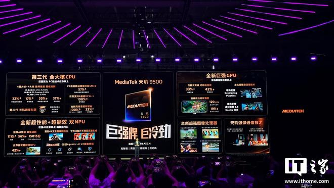 IT之家 9 月 22 日消息,联发科今日正式发布天玑 9500 旗舰手机处理器,号称架构全面革新设计,打造超强冷劲算力,集成了焕新的全大核 CPU、GPU、NPU、ISP 影像处理器等高算力单元,单核性能首次比肩苹果当代旗舰。