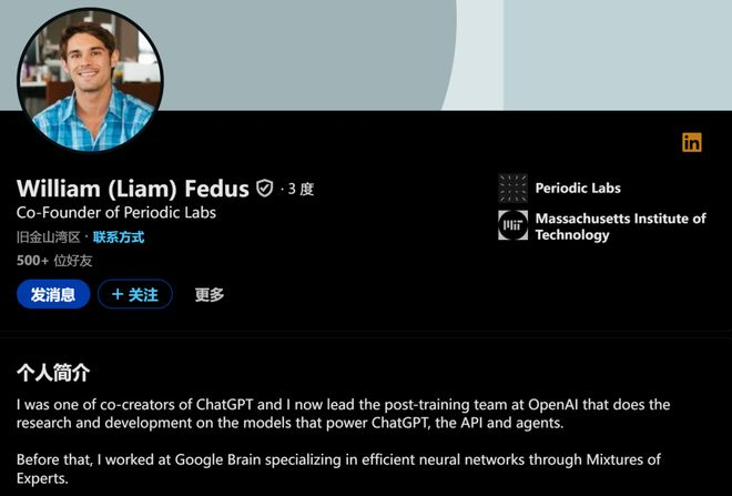 William Fedus是Transformer架构的重要共作者,曾在Google Brain、OpenAI领导核心模型的后训练(Post-Training)方向。