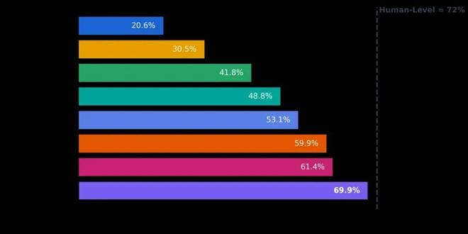 一年前,Agent S 在 CUA 基准测试「OSWorld 」上取得了 20.6% 的成绩。此后能力继续扩展,Agent S2 将业界水平提升到了 48.8%。就在昨日,Agent S3 又刷新了自身记录,将性能拉升到了 69.9%,超出先前的 SOTA 10%,接近人类水平的 72%