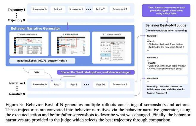 针对此,Agent S3 引入了Behavior Best-of-N (bBoN)来实现 CUA 的并行扩展,包括以下两个关键组件: