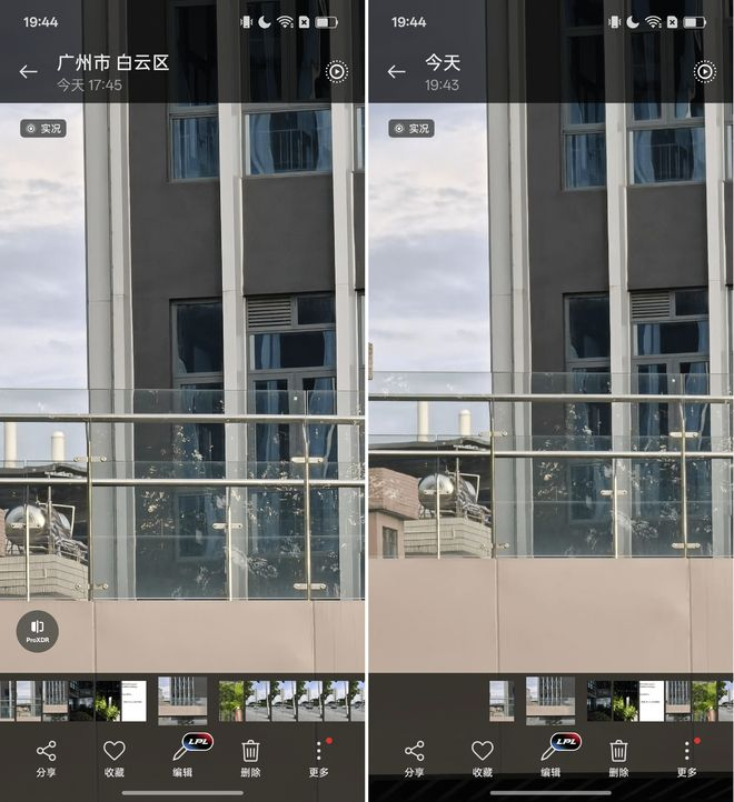 在微信朋友圈场景中,小米15 Pro静态图的分辨率从原图4080*3072的降至2550*1920,细节保留一般,远处的玻璃窗的细节丢失严重,还出现了轻微的色块现象,但好在动态帧的帧率保持得不错,流畅度表现出色,与相册中原片几乎没有什么差异。