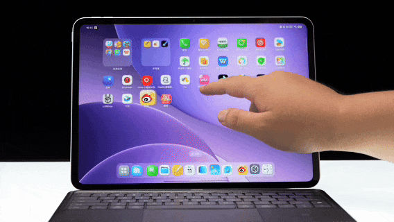 因为当你解锁平板进入桌面后就会发现,这个液态玻璃的设计并没有延续到桌面内部,系统桌面还是保留了不少原来的味道。