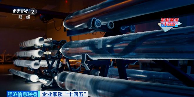 长飞光纤执行董事兼总裁 庄丹:这根预制棒就是“十四五”期间,我们研发做出来的。现在也是全球最大的尺寸,可以拉将近1万公里的光纤,都是通过自主创新实现的。