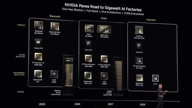 黄仁勋在2025年GTC上公布,计划2026年下半年上市,目标是下一阶段的大模型训练与推理。