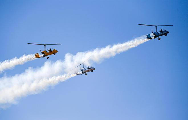 10月18日,旋翼机进行飞行表演。10月18日,第七届中国天津国际直升机博览会迎来首个公众开放日。新华社记者 赵子硕 摄