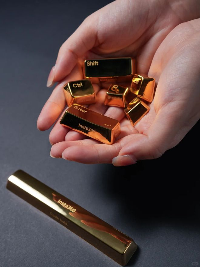 影石 Insta360 今年奖励员工 21 枚黄金键帽作为程序员节礼物。其中,黄金空格键重 35.02 克,价值近 4 万元。