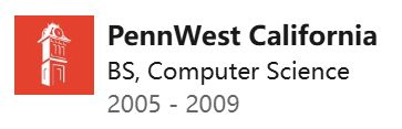 他本科毕业于西宾夕法尼亚大学(PennWest California),获得了计算机科学学士学位。