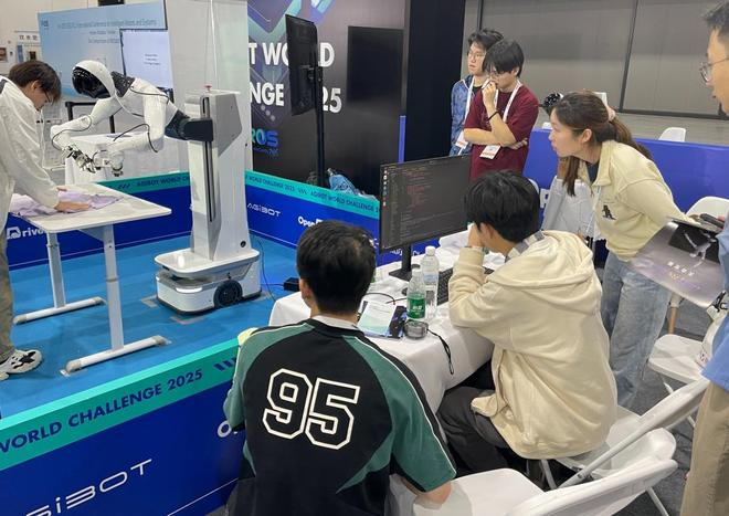 会议期间,宇树科技、智元机器人、北京人形机器人创新中心等国内代表性企业与机构还组织了多项机器人技能比赛。来自不同国家的高校与研究团队在现场调试代码、反复优化,争分夺秒提升比赛成绩。