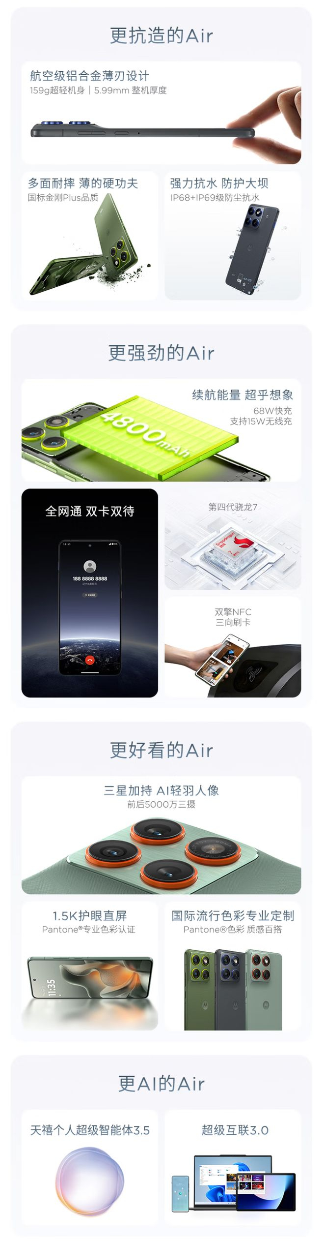 联想 moto X70 Air 手机预售:第四代骁龙 7 处理器,2599 元