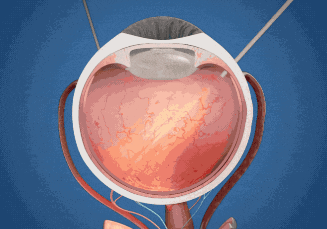 整个过程类似于一块微型的太阳能电池板,位于视网膜萎缩区域内的植入物充当人工感光器阵列,刺激剩余细胞的视觉信号传递。