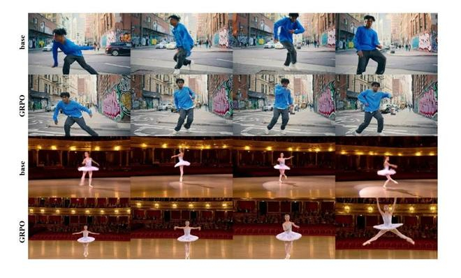 另外针对视频生成场景,使用组相对策略优化(GRPO)算法,提升GRPO在视频生成任务中的收敛速度与生成质量。
