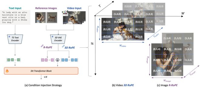 在此过程中,主体到视频(Subject-to-Video, S2V)生成任务开始备受关注。S2V 的目标是:给定一个或多个参考图像,生成主体外观一致、背景可控的动态视频。这种方法结合了文本生成的创造性和图像生成的精准性,适合数字人、虚拟试穿、电商广告、艺术创作等场景。