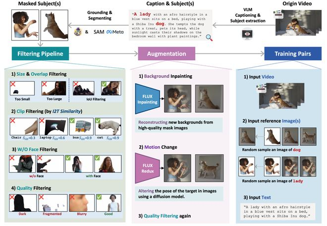 为应对这些挑战,来自合肥工业大学、清华大学和智谱的研究团队提出了开源多主体参考视频生成框架——Kaleido,旨在让开源模型在一致性与背景解耦方面达到最优水平。